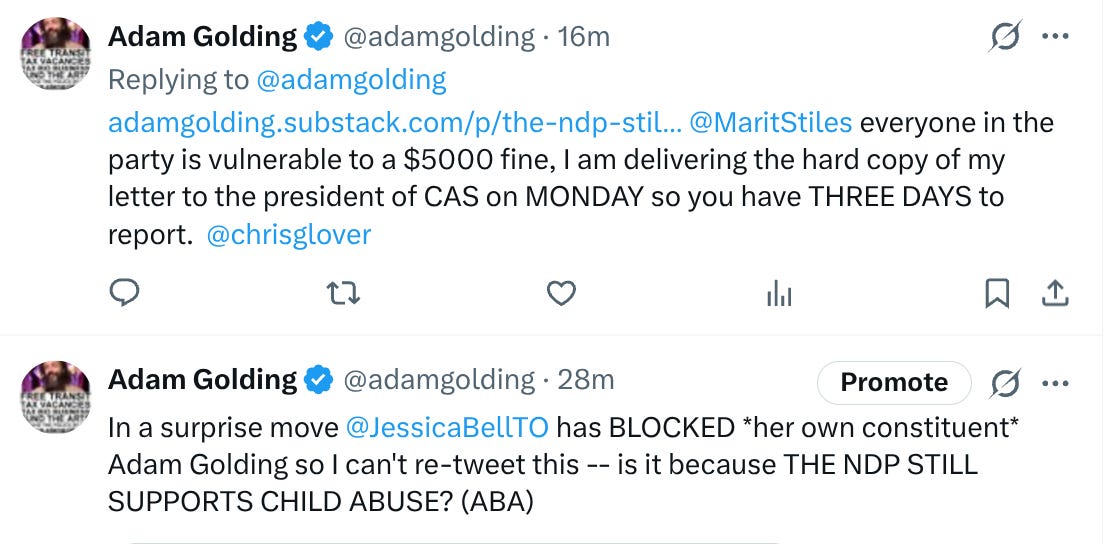 Imagine you uncovered child abuse, supported by the system, and every ‘adult’ you report to malevolently ignores you, blocks you, silences you, or attacks you. That has been my experience with The Ontario NDP. Despite years of tireless service to the cause, for standing up for the defenceless, our core value, I get a slap in the face from Jessica, whose silence is a profound insult, and more importantly furthers abuse. Do not re-elect her. I now regret supporting her. Child Abuse is more important than housing.